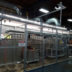 Our dip line systems can use parts that are manually or automatically hung. The system uses an overhead conveyor system and custom-made tanks to dip parts into a primer and then a top coat. The parts are moved into a provided pre-heated oven where the parts are dried. The parts are then manually or automatically unloaded and ready for packaging based on the customers design preferences.