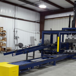 The ingot stacker is designed to stack aluminum ingots in an interlocking pattern based on total weight. Ingots will enter onto a servo indexer and move in increments of nine inches. The stacker will then determine which ingots to flip while on the indexer. The ingots leave the indexer and enter the accumulator to build up layers. The layers are then offloaded to the stack conveyor. The ingots remain on the stack conveyor until the stack is complete, at which point the stack is move to prepare it for transfer and to make room for a new stack to begin. These stackers can accommodate a large variety of stacking patterns and can be customized for a variety of ingot sizes.