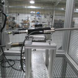 This particular machine is capable of testing a single steering column with motion and force application along 2 axes. The program and user interface for this system are created using Visual Studio and feature a user-programmable test profile to facilitate custom tests and versatility.